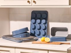 Haz que hornear de forma más saludable sea pan comido con nuestros utensilios para hornear con revestimiento cerámico. Nuestro juego de utensilios para hornear incluye 11 piezas, todas con una superficie de cerámica libre de toxinas, para que puedas hornear productos sin ninguno de los problemas. Los juegos incluyen organizadores de almacenamiento para mantener tu cocina ordenada.
